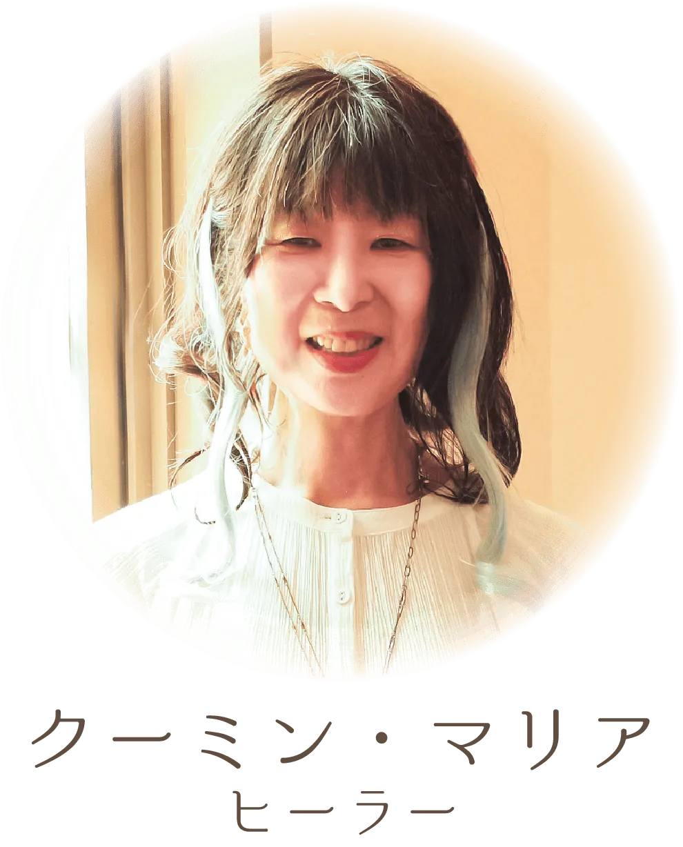 子どもがアトピー性皮膚炎で生まれたことをきっかけに、食べ物の大切さに気づく。自身の幼少期から数多くの不思議体験を経て、世の中の違和感や生きづらさを乗り越え、ヒーラーの道へ導かれる中、ある時、聖母マリアのエネルギーが降りてくる。現在はそのエネルギーで人を癒し、愛と癒しの世界を広げている。