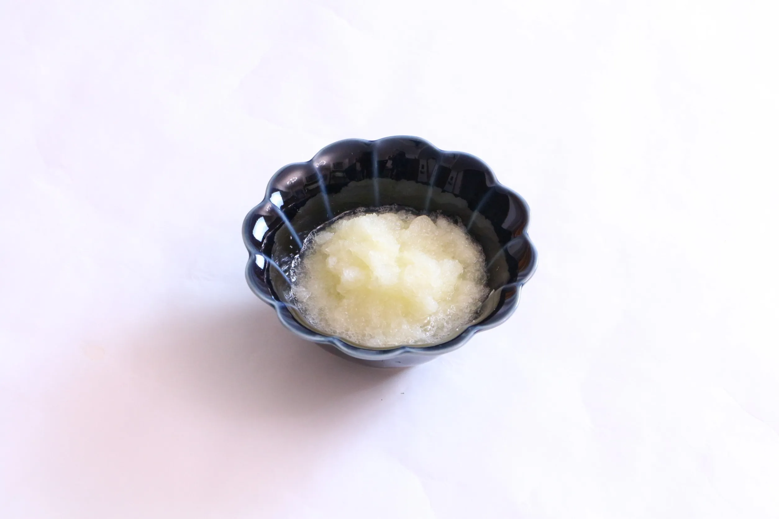 - 力を入れず、大根の重みだけですると、ふわふわの甘い大根おろしができます。